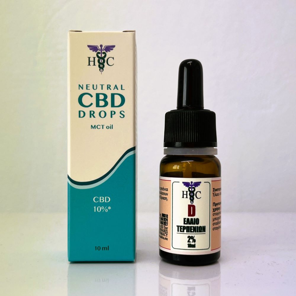 Έλαιο Ουδέτερου (Neutral) CBD 10% 10ml + D. Έλαιο Τερπενίων Κατά της Σπαστικότητας (2%) 10ml